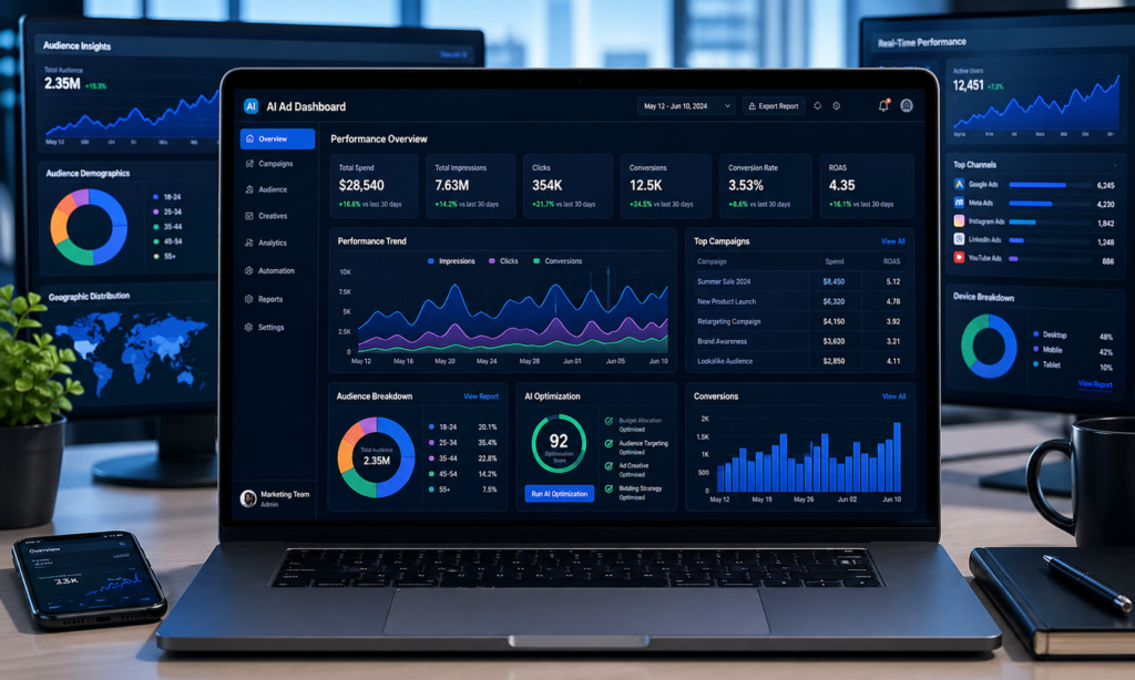 Digital advertising has been transformed by AI and made more efficient and data-driven. It makes sure that advertisements will be displayed to the correct individuals at the appropriate moment and thus the likelihood of conversion is boosted. Automated systems of bidding, targeting audiences, and tracking of performance allows marketers to do more with less.